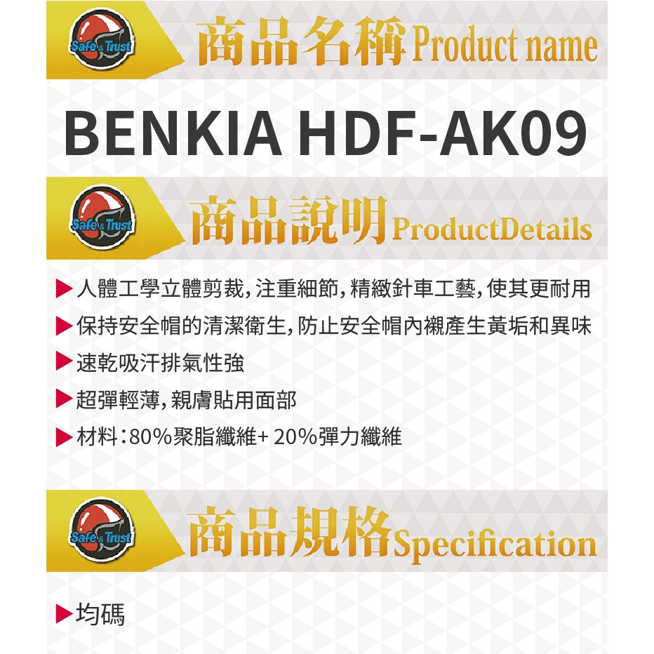 BENKIA HDF-AK09 快乾吸汗 全罩型頭套