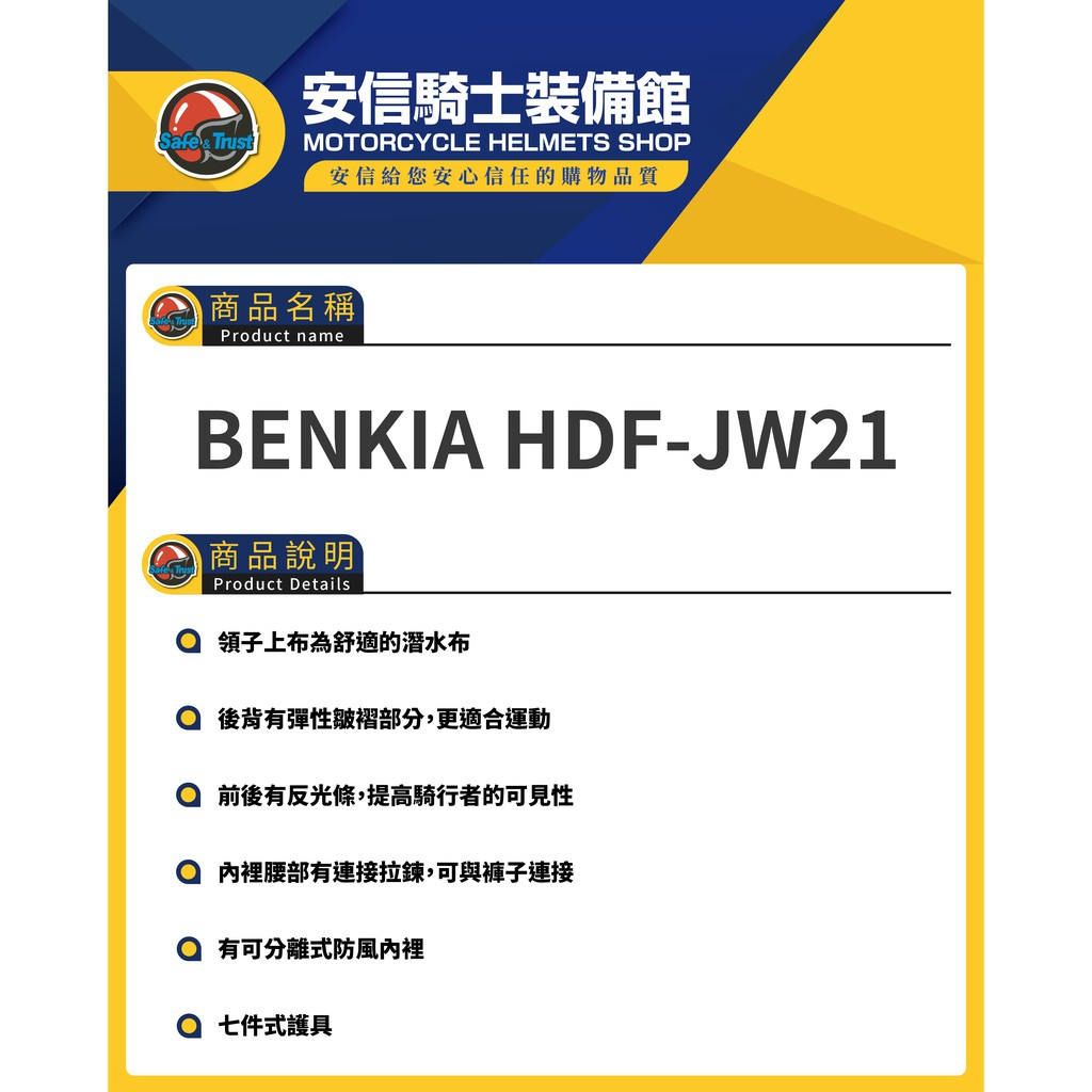 BENKIA HDF-JW21 四季 七件式護具 防摔衣