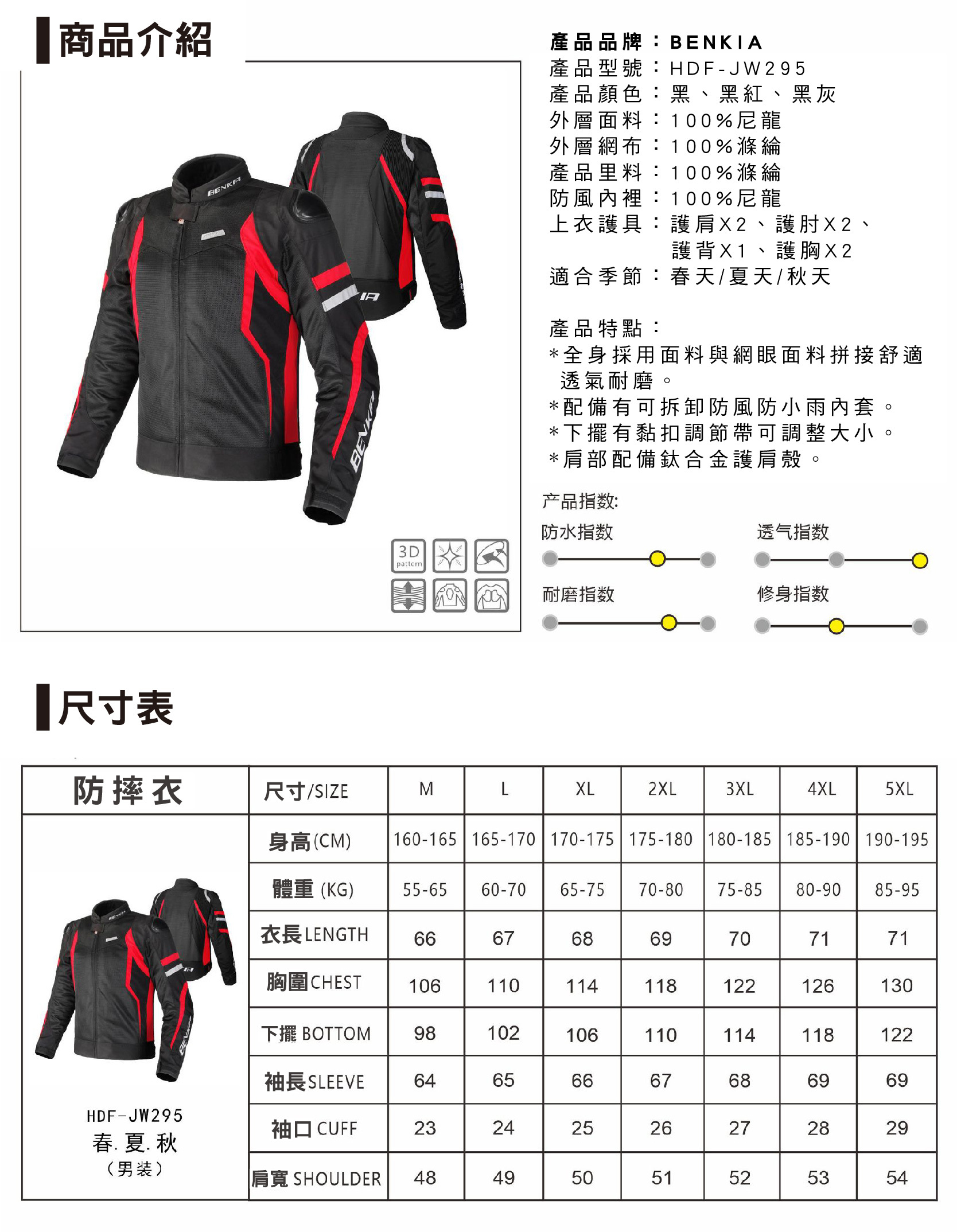 BENKIA HDF-JW295 防摔衣 網眼透氣 耐磨 護具 騎士 外套 JW295