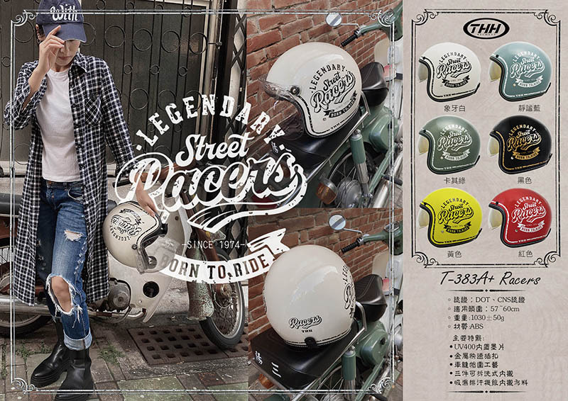 THH T-383A Racers 復古安全帽 紅色 半罩式 3/4罩 內墨片 T383A