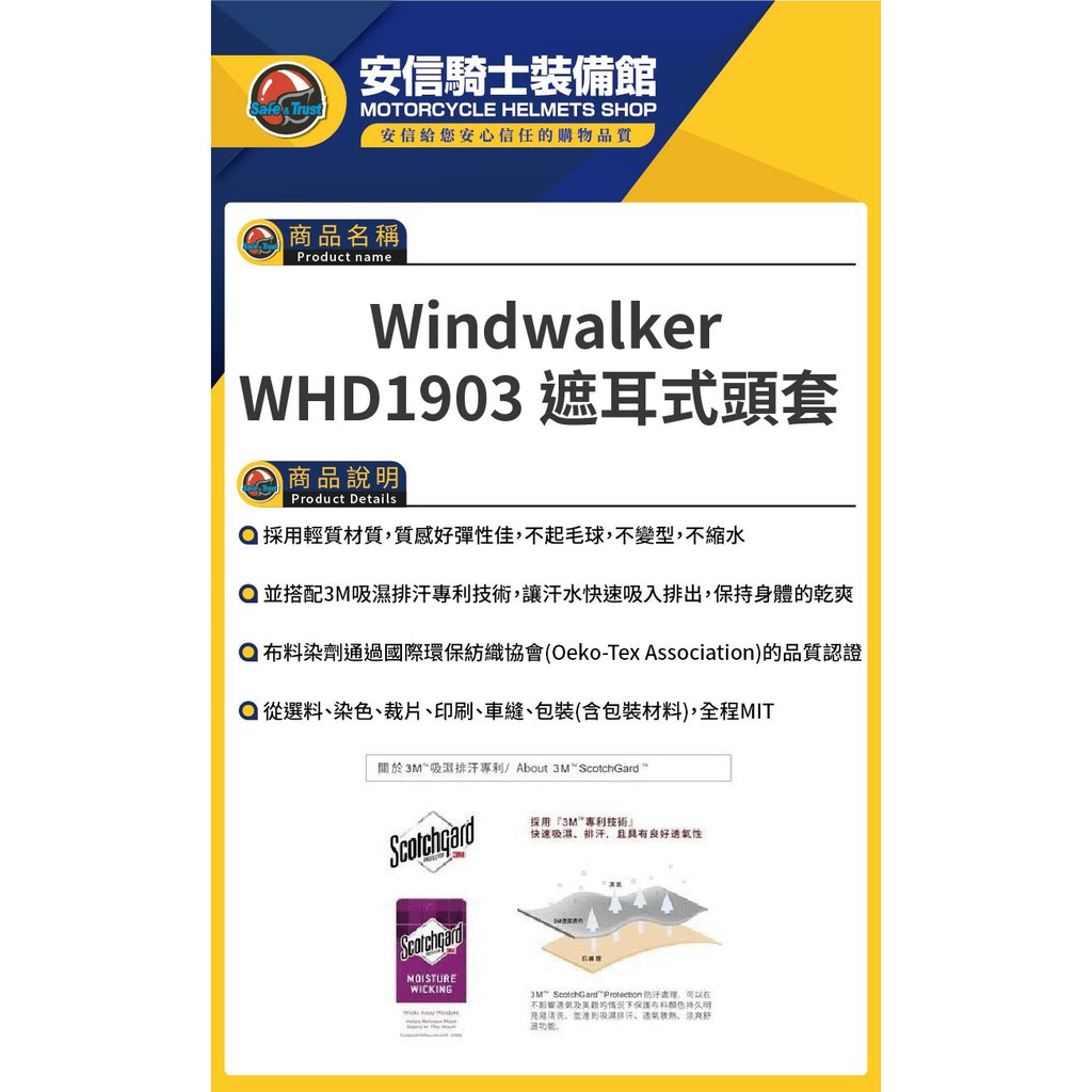 Windwalker 風行者 WHD1903 遮耳式頭套 透氣排汗 頭套 立體剪裁 半頂 涼感 台灣製