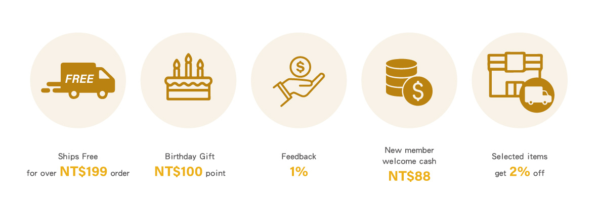 Free shipping for over 199NTD / 490NTD (limited to Taiwan)