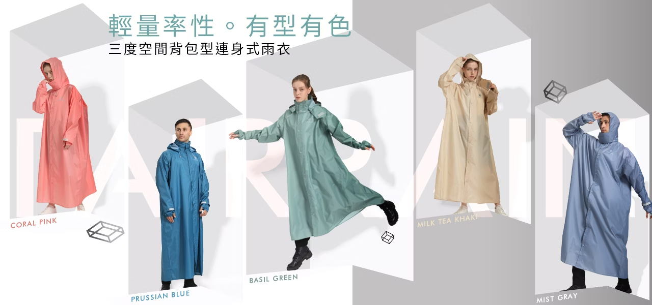 .率性色調輕量材質 , 隱藏式收納雨帽。