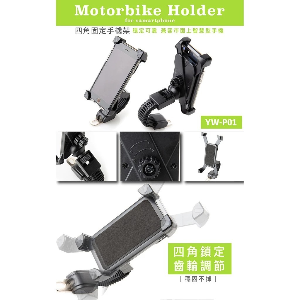 安全工廠 YW-P01 四角固定 手機支架 車架 手機架 導航手機架 大羊 重機 非 ram P01