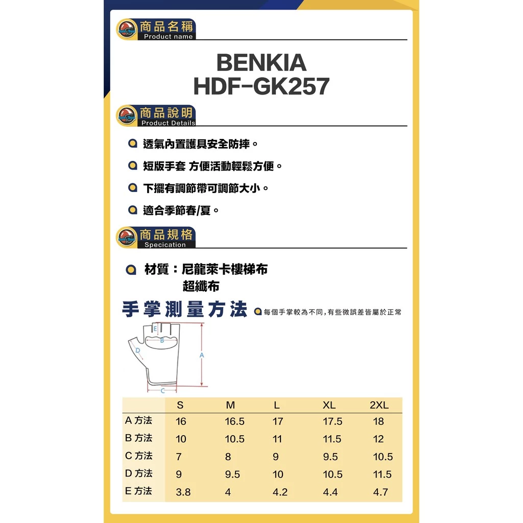 BENKIA HDF-GK257 HDGK257 glove