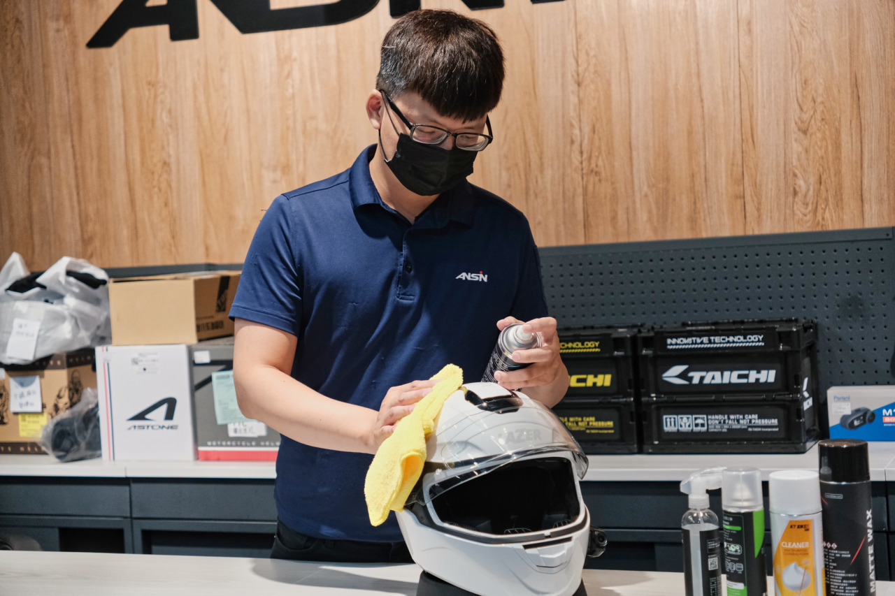我們提供騎士相關用品的販售、安裝安全帽零件及安全帽保養的服務。