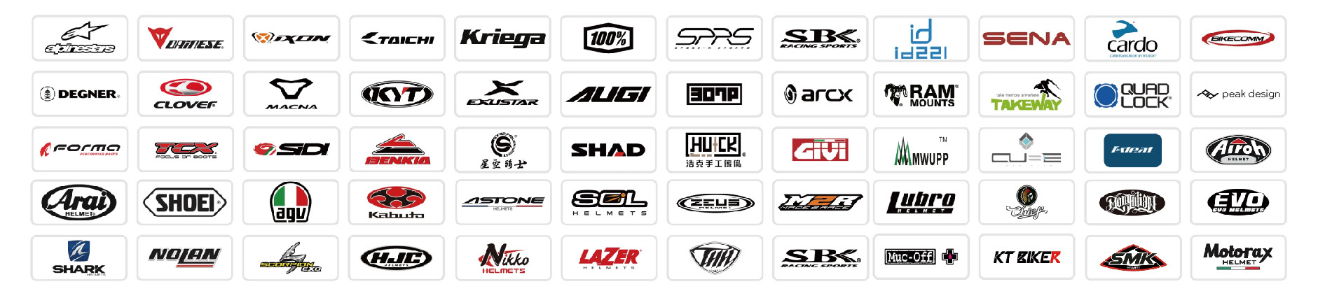 從安全帽至騎士用品、防護裝備、騎士藍芽耳機、機車行車紀錄器、騎士周邊、機能貼身衣物、雨衣、手套、手機支架、機車清潔用品等商品,並引進多種品牌提供更多樣選擇。