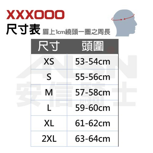 ※此為教學用參考尺寸,每款安全帽尺寸皆不相同,請依各賣場安全帽尺寸為準。