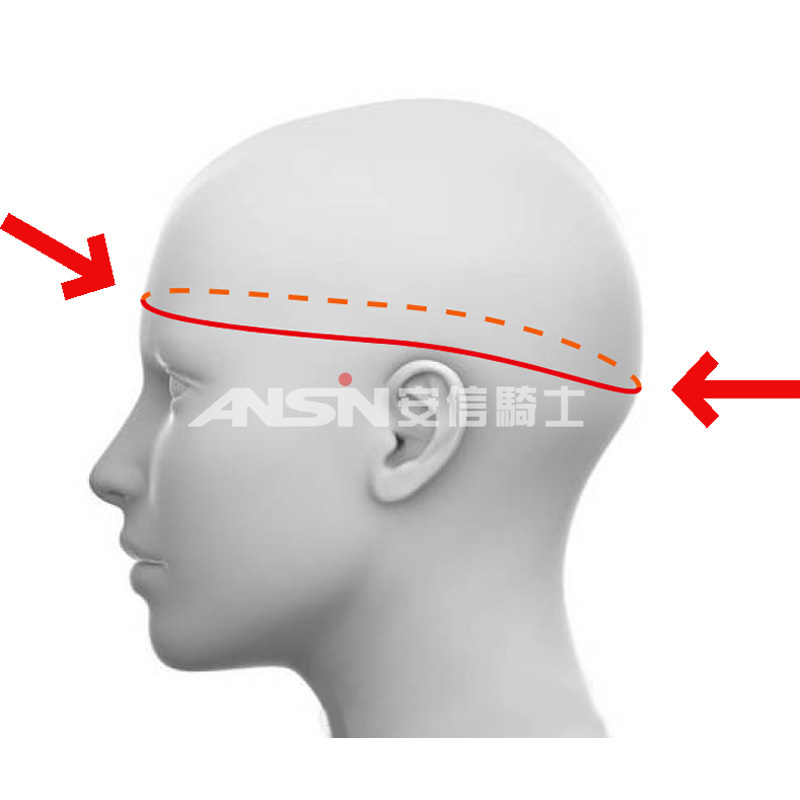 使用捲尺圍繞前額(眉上約1cm-2cm)