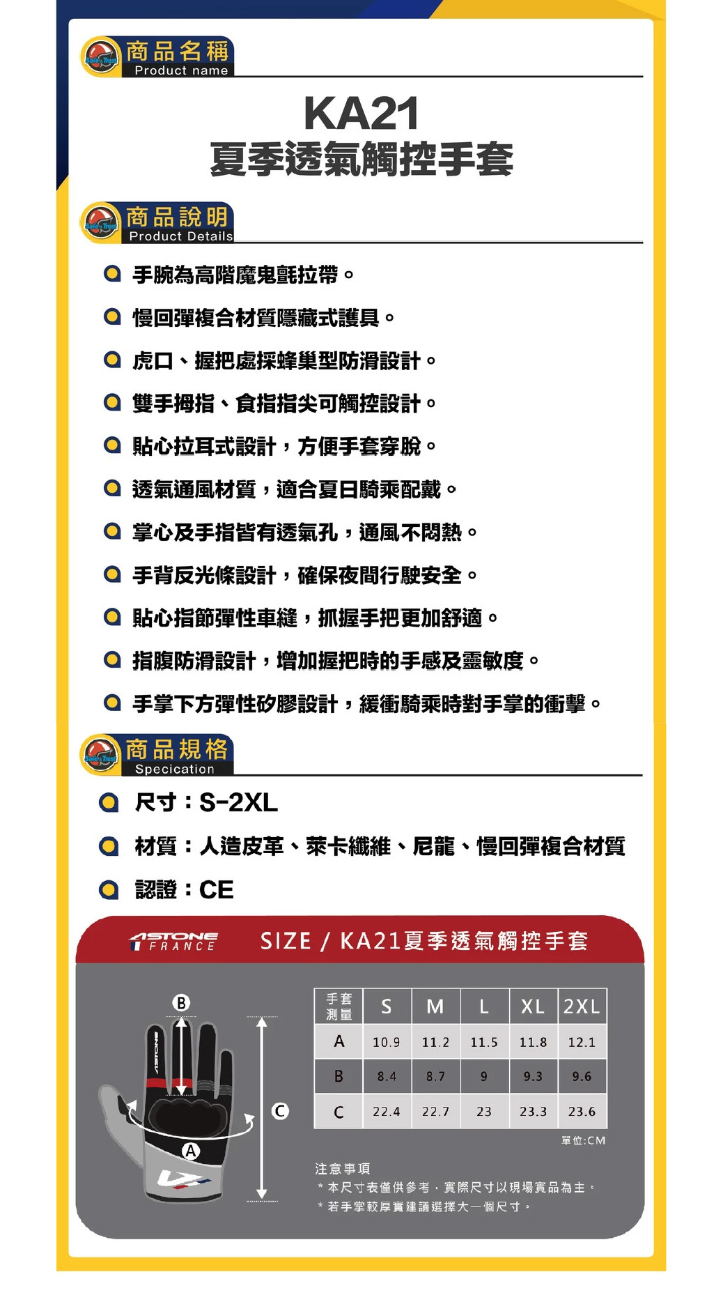 ASTONE KA21 防摔手套 夏季 透氣 觸控 輕便