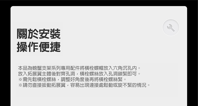 ※請勿直接扳動拓展翼,容易出現連接處鬆動或旋不緊的情況。
