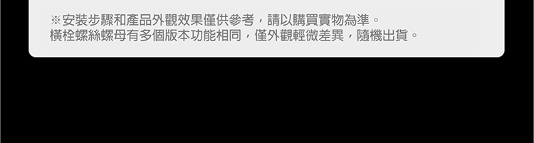 .本品為螃蟹支架系列專用配件將橫栓螺帽放入六角沉孔內。