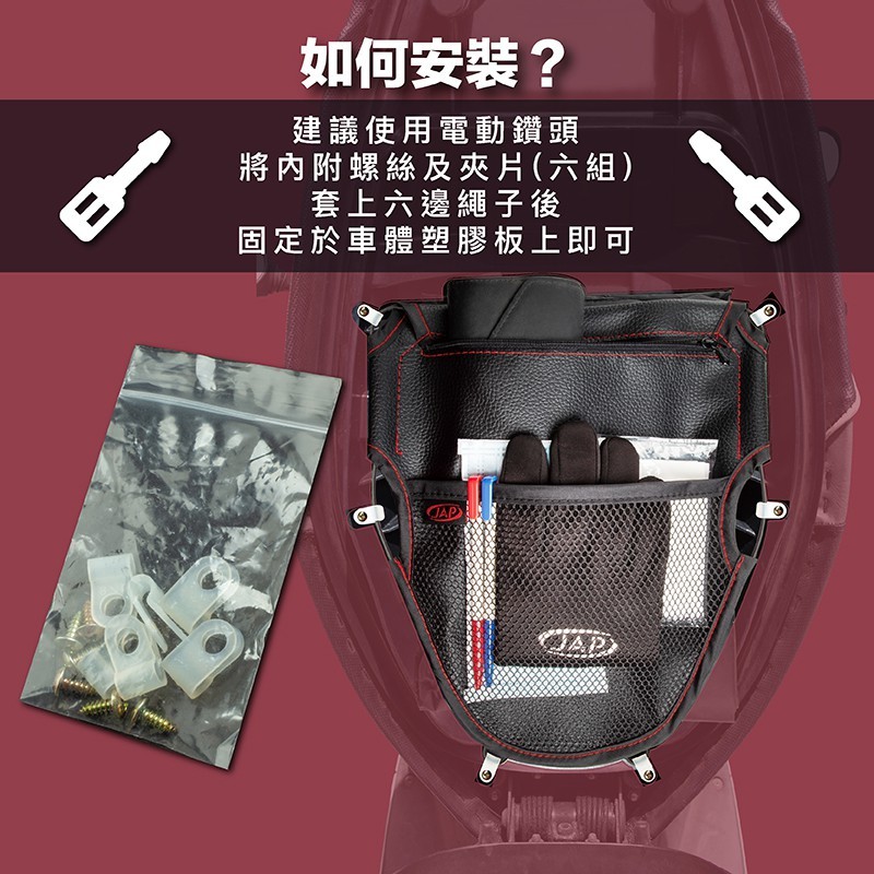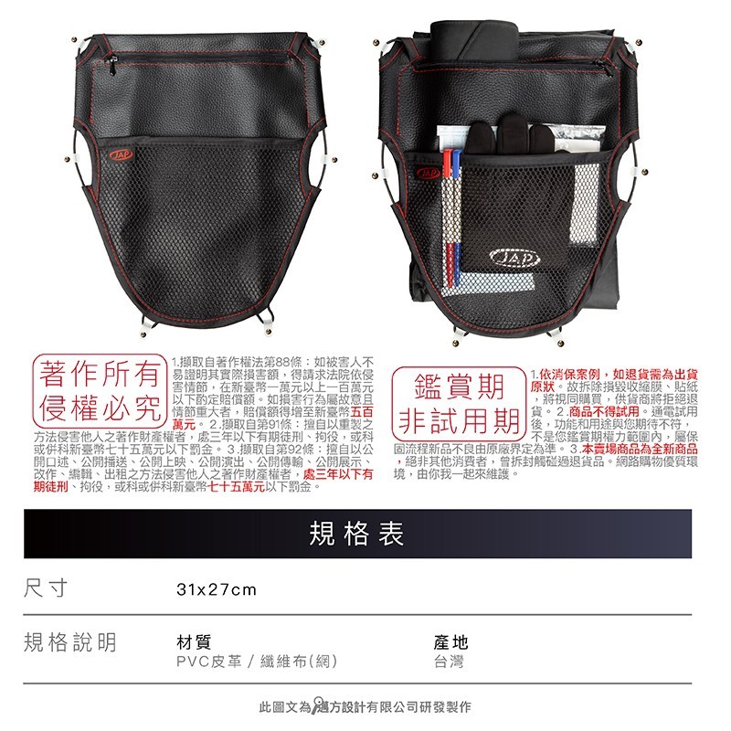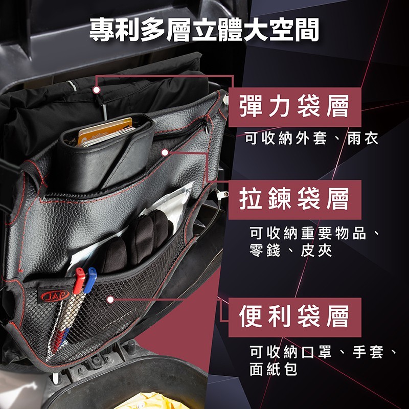 .機車三層拉鏈置物網袋(大)。
