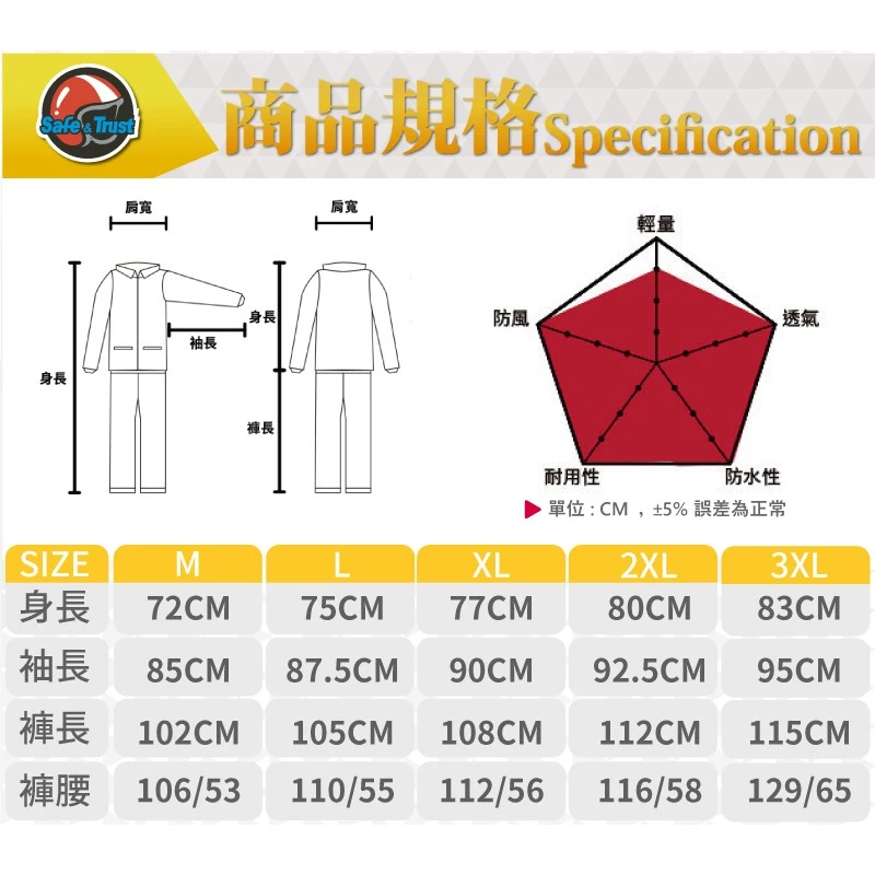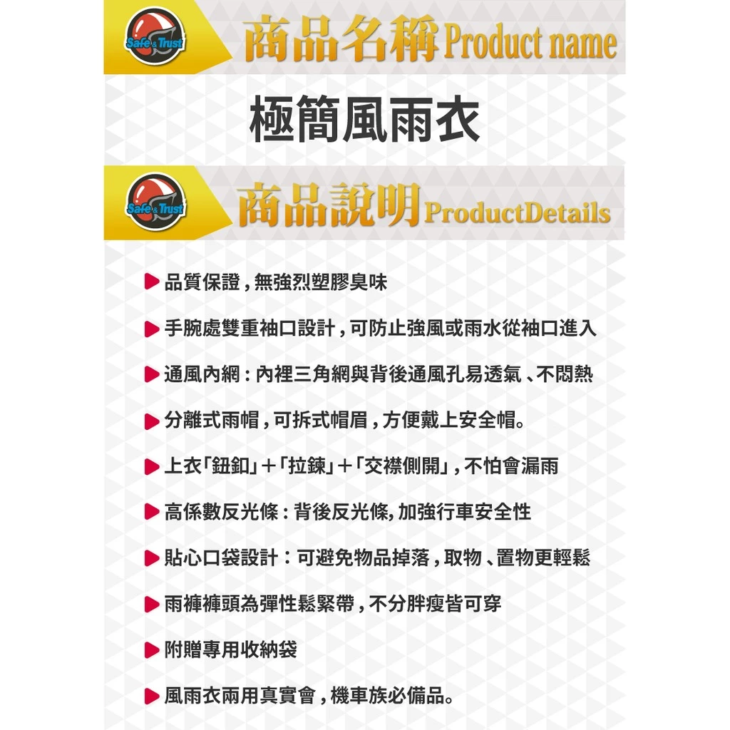 雙龍牌 極簡型機車兩件式風雨衣 ES