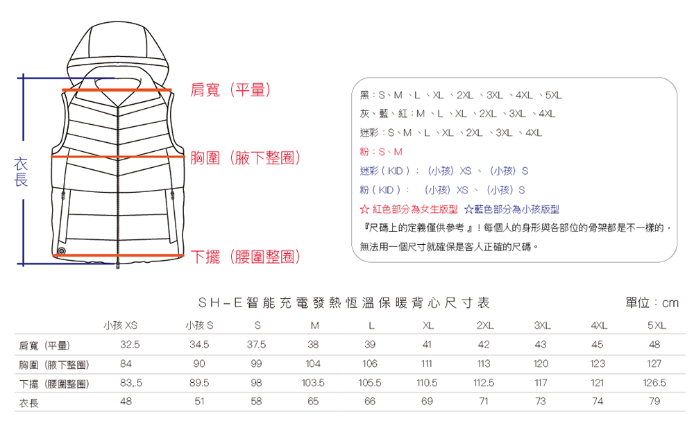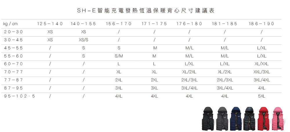 .警告:請警慎選用您的行動電源與年限、SBK 發熱背心本身不帶電也不具有輻射、故產品本身不會導致衣服自燃的問題。