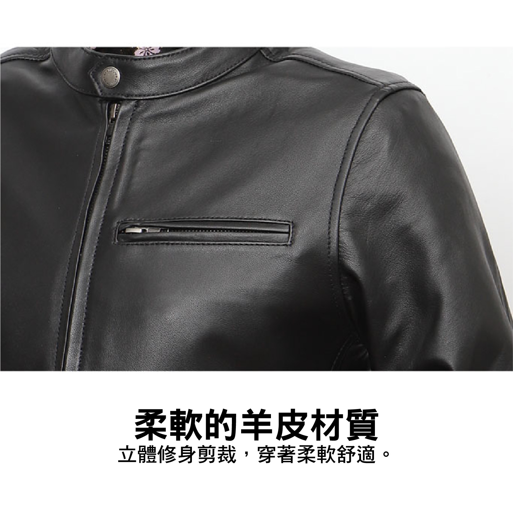 .柔軟的小羊皮材質,立體修身剪裁,穿著柔軟舒適。