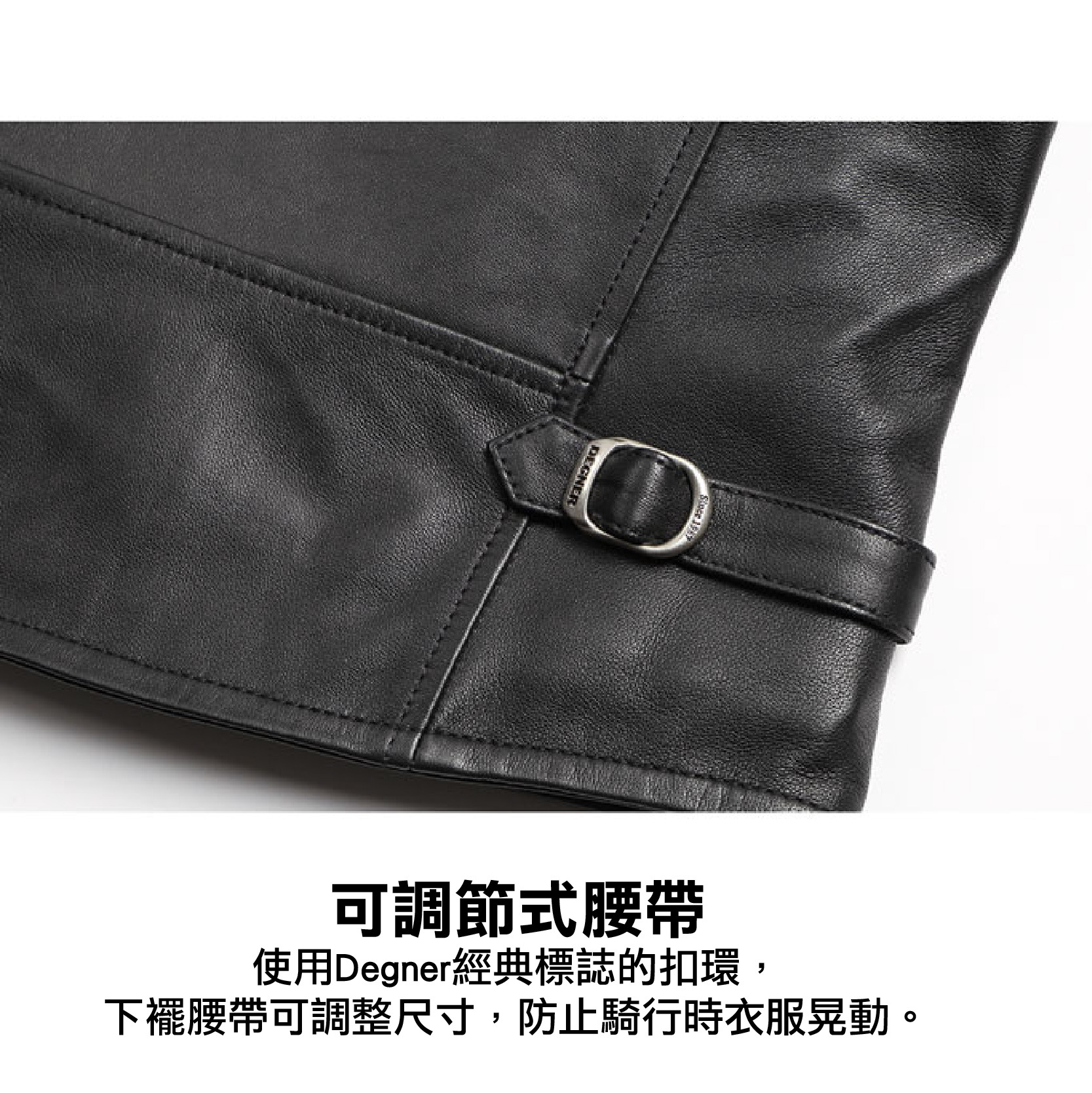 .使用Degner經典標誌的扣環,下襬腰帶可調整尺寸,防止騎行時衣服晃動。