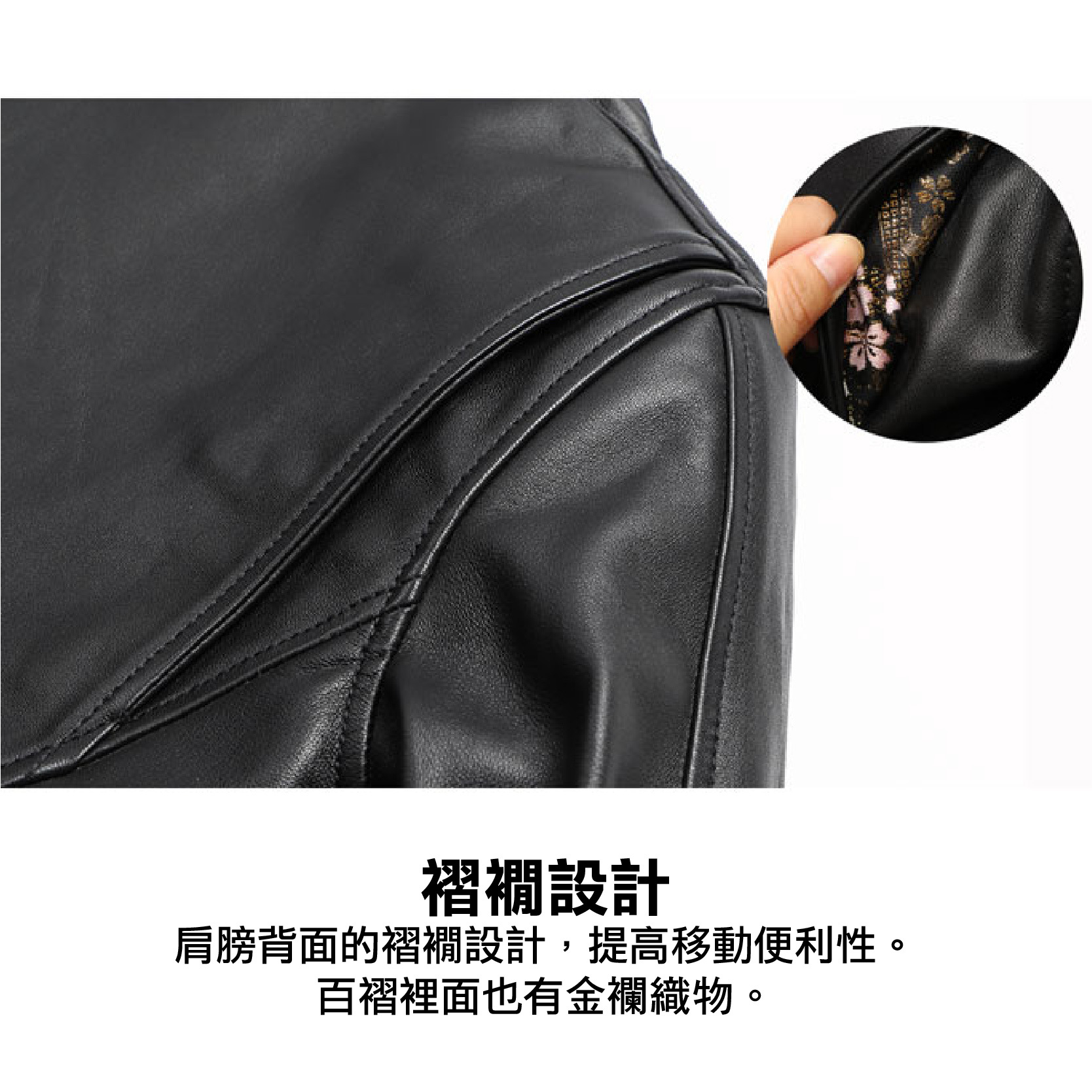 .肩膀背面的褶襉設計,提高移動便利性。