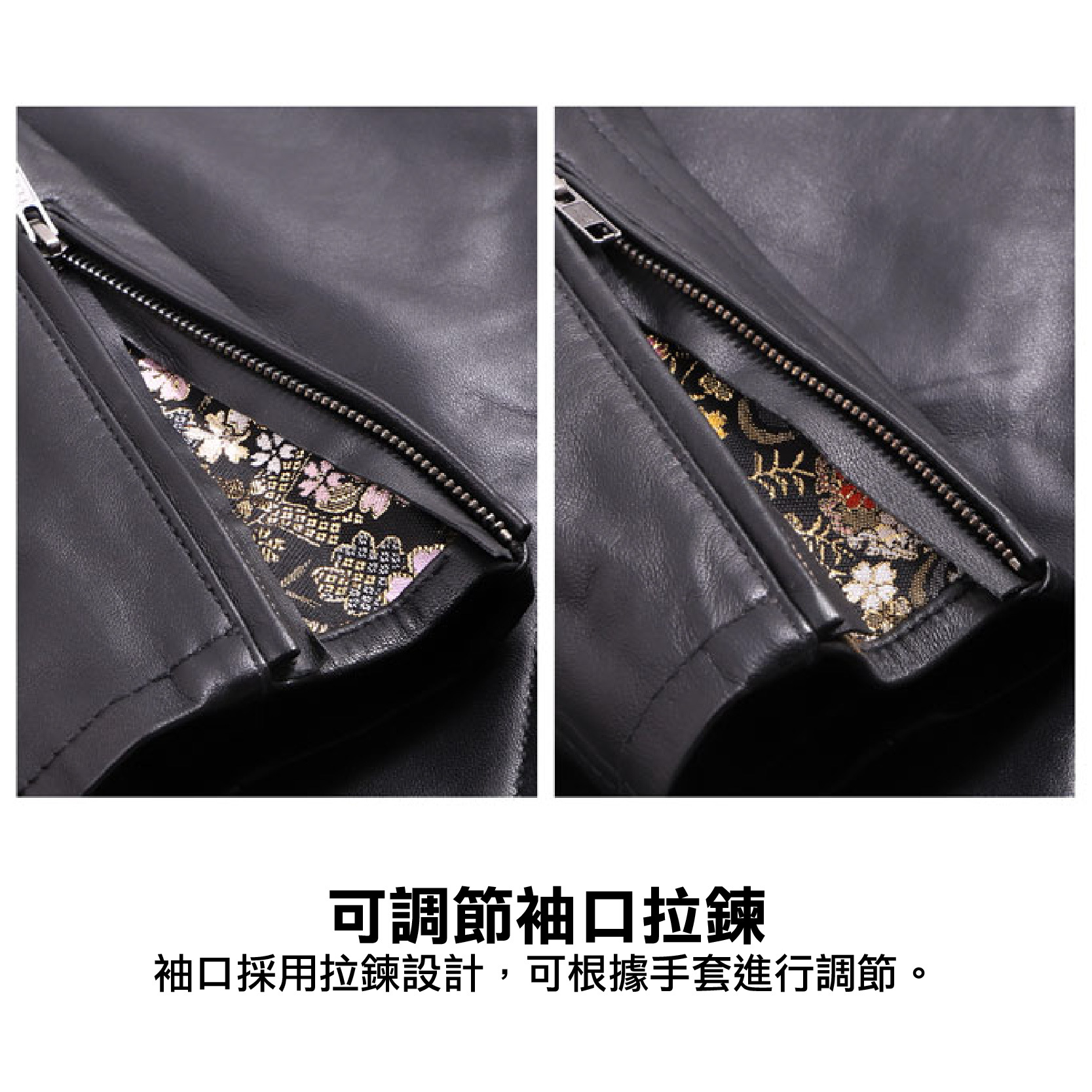 .袖口採用拉鍊設計,可根據手套進行調節。