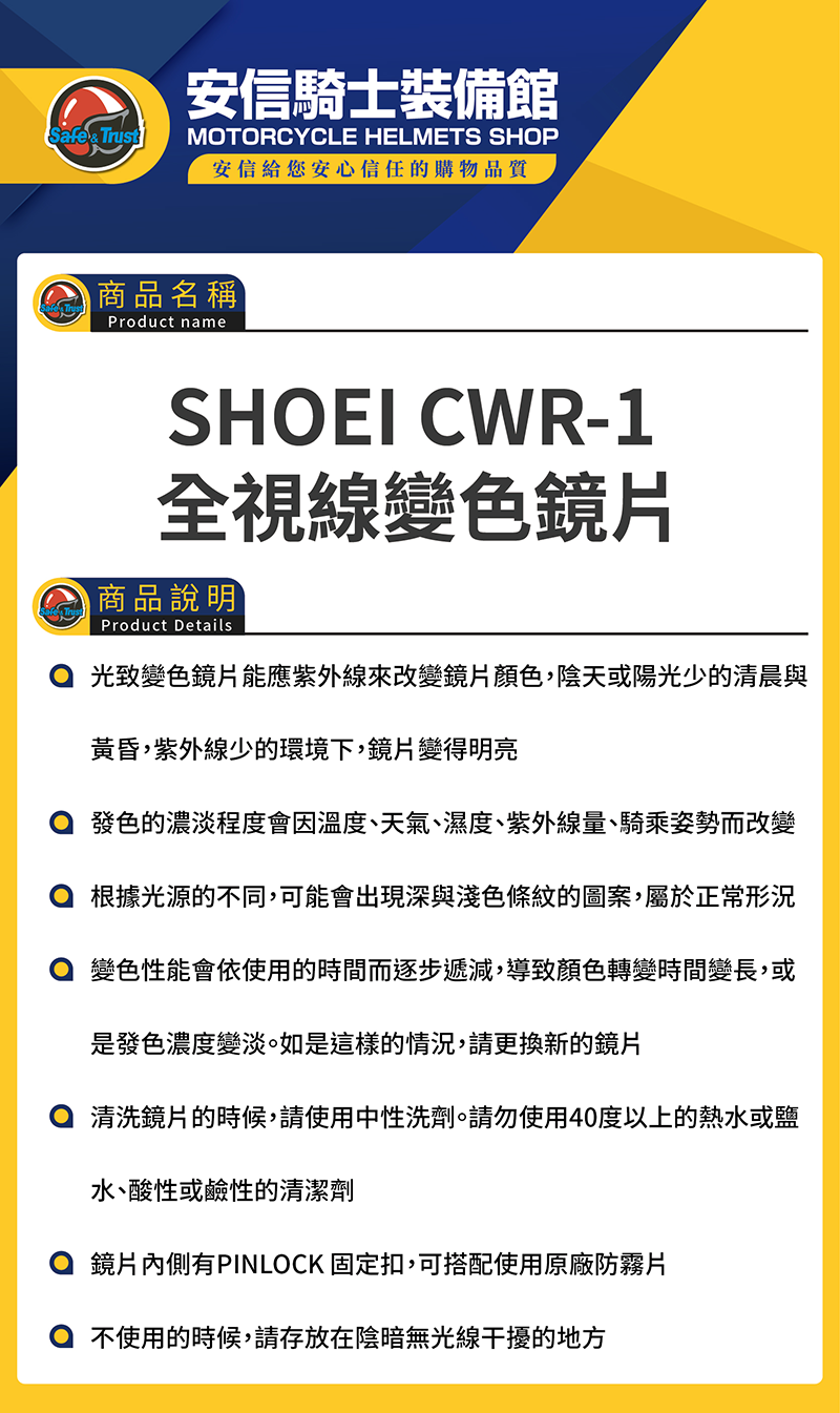 SHOEI CWR-1 全視線 變色鏡片 紫外線 光致變色鏡片 可裝防霧片 Z7 X14
