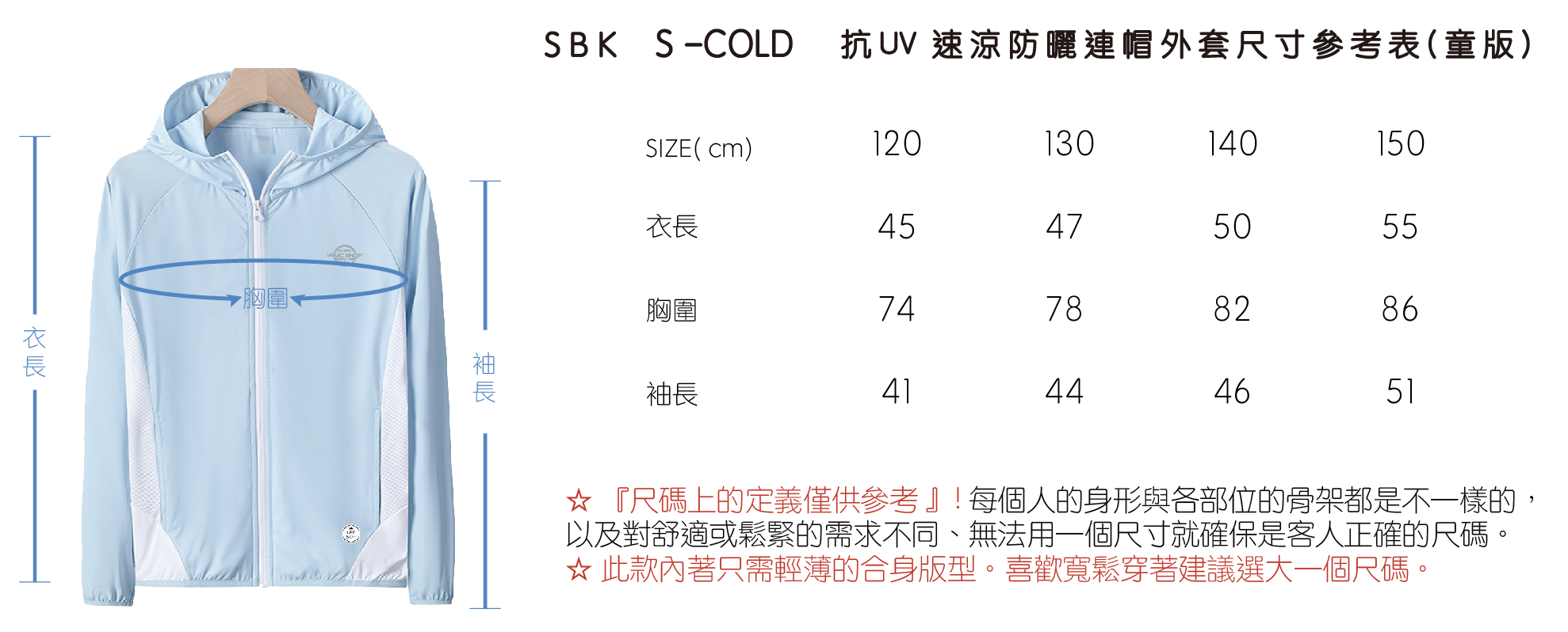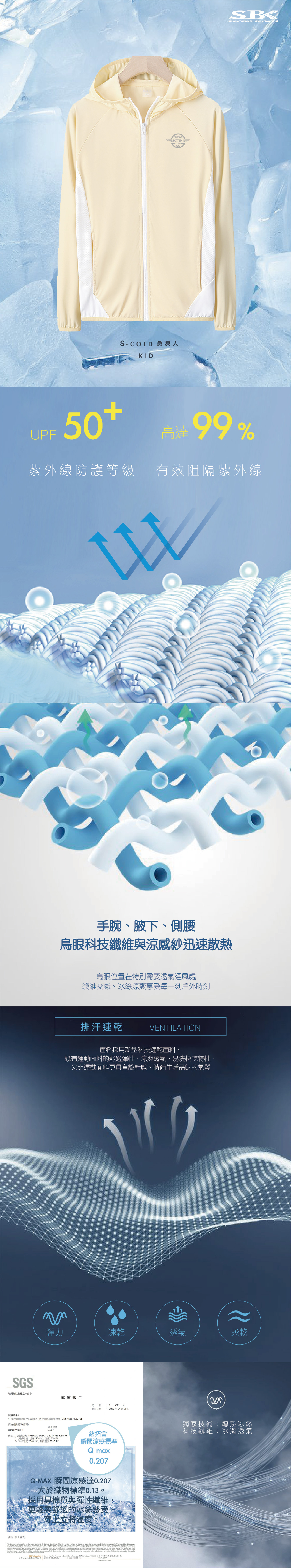 SBK S-COLD 急凍人 KID版型 速涼抗UV 防曬連帽外套 涼感 抗UV 防曬 兒童外套